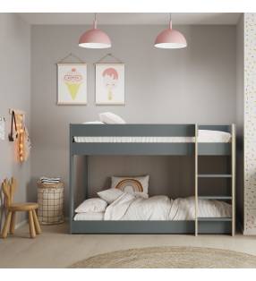Litera Montessori Angela para cama de 90x190cm. Fabricada en DM y madera de pino. Color blanco y petrol con natural. Fabricada en DM/PINO.