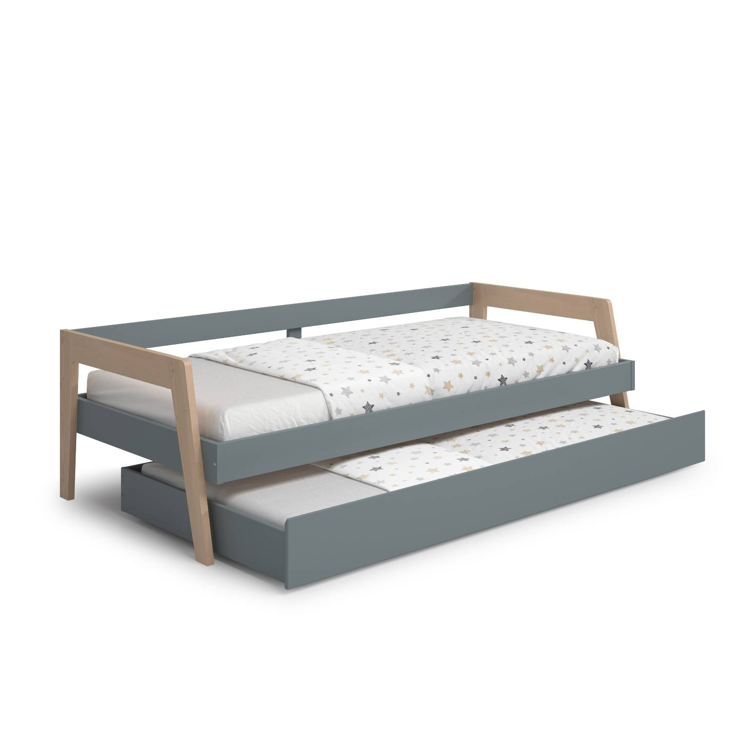 Cama Nido Juvenil Sofia 90X190, Color gris claro. Dimensiones: 195.2cm (Largo), 105cm (Ancho) y 62cm (Alto). Somier elevable para tener las camas a igual altura.
