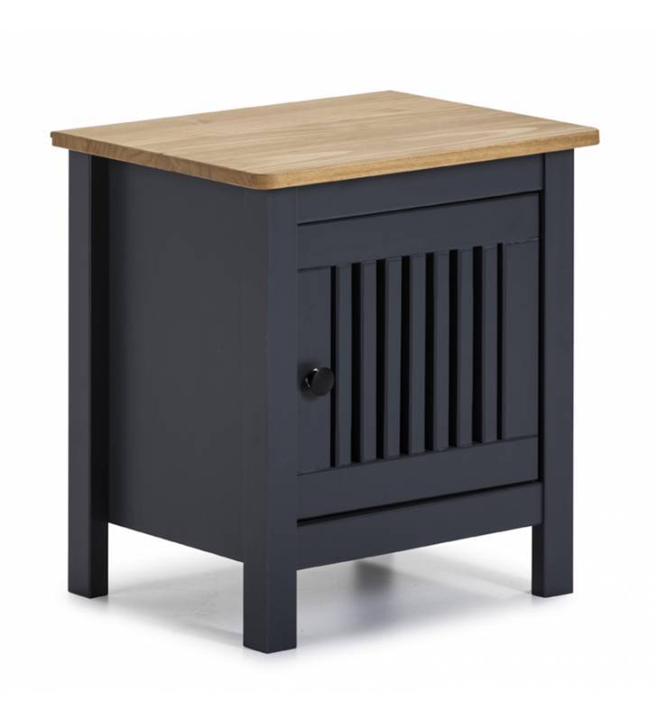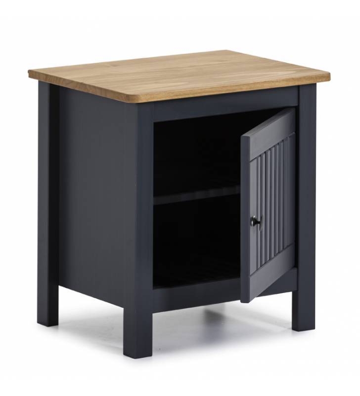 La mesita de noche Bahía fabricada en pino con una puerta y dos cajones, añade el toque de elegancia y funcionalidad que necesita tu dormitorio. Disponible en color blanco, cero o gris antracita para adaptarse a tu estilo.
