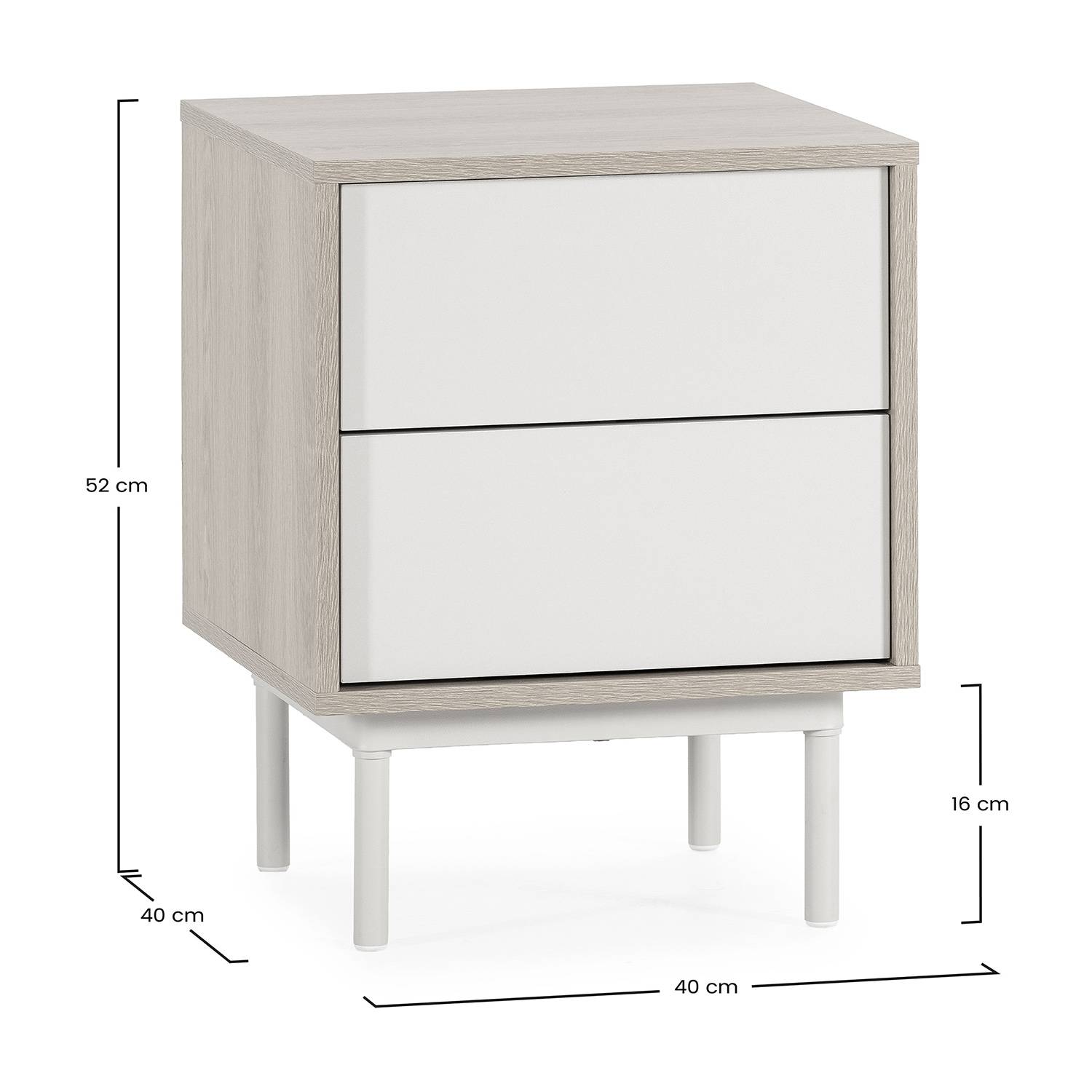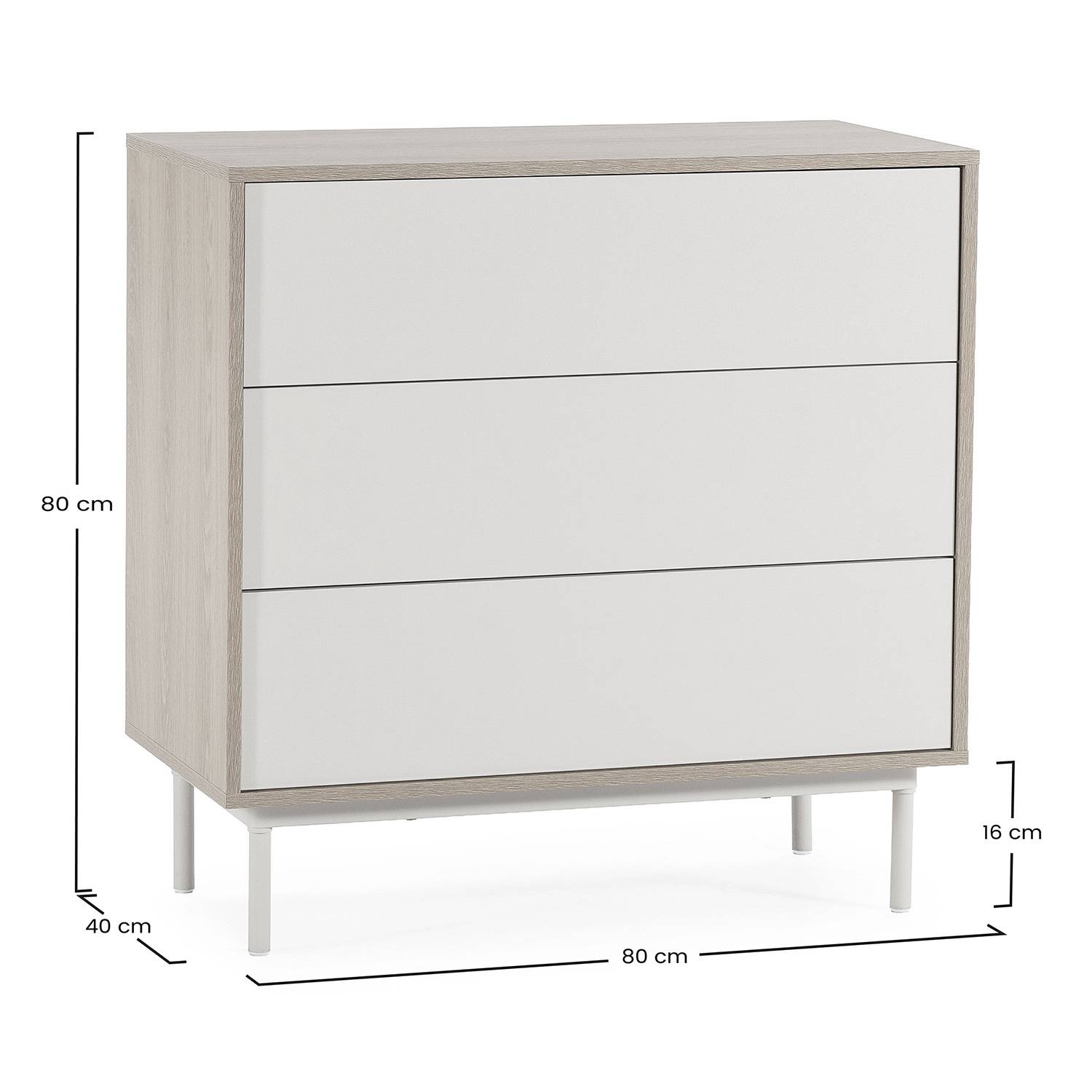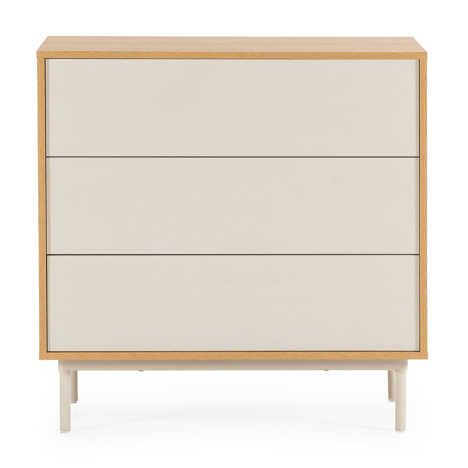 La mesita de noche cuenta con 2 cajones, ideales para mantener a mano lo esencial del día a día: accesorios, cargadores, libros o pequeños objetos personales. Mientras que la cómoda, dispone de 3 cajones, ofreciendo un espacio práctico y amplio para organizar ropa, textiles o complementos con comodidad.