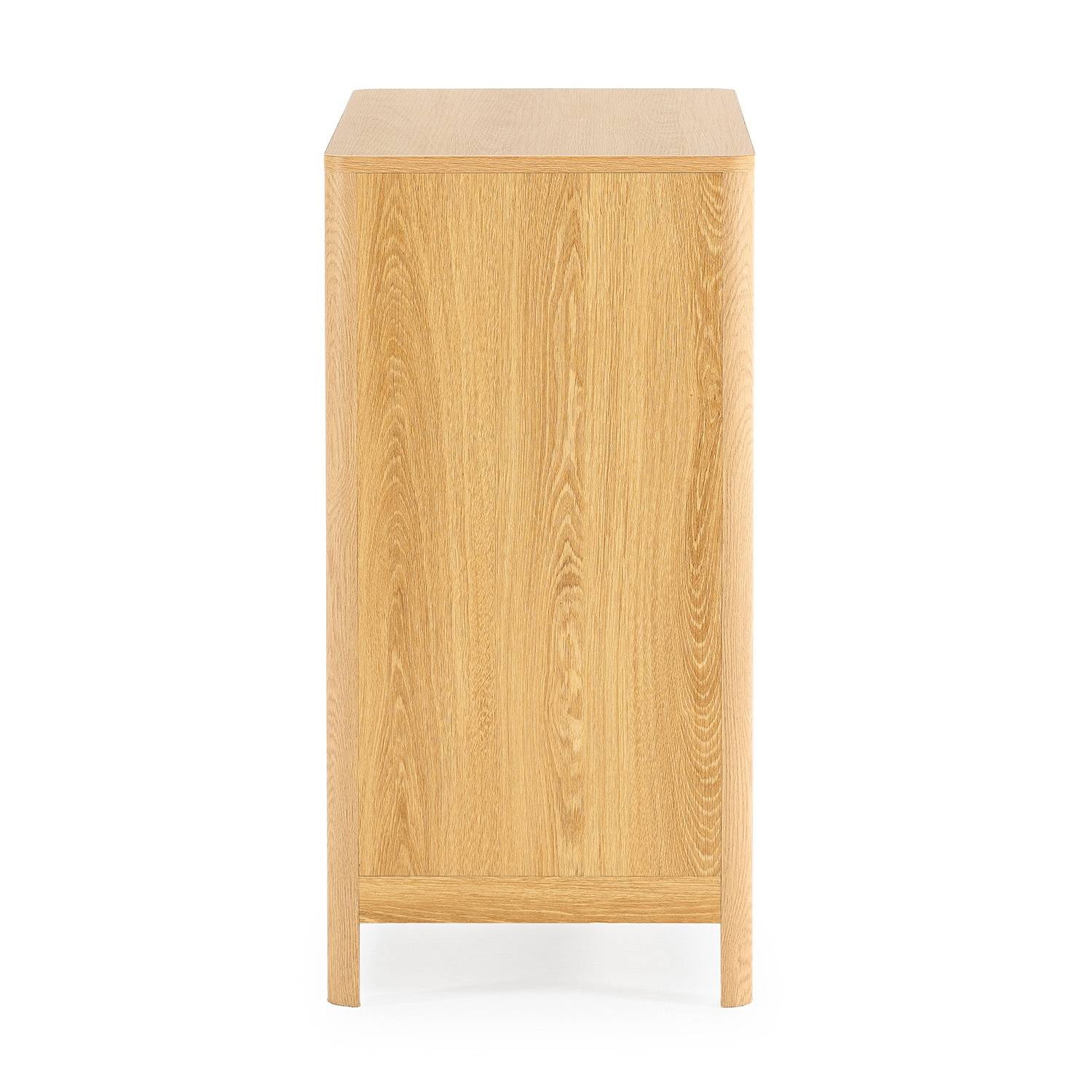 Los cajones incorporan un sistema de apertura tipo uñero integrado, que permite prescindir de tiradores visibles y mantener un frontal limpio y continuo. En el cajón superior, el uñero se sitúa en la parte inferior, mientras que en los demás cajones se encuentra en la parte superior, un detalle de diseño que aporta dinamismo al conjunto y refuerza su estilo elegante.