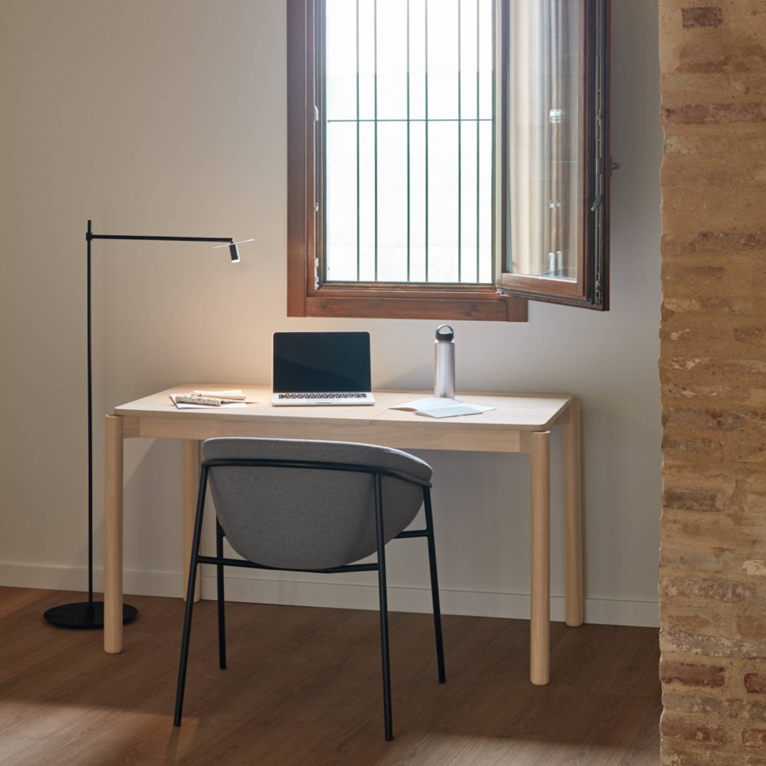 La mesa de escritorio Bowie de 60 cm de ancho es ideal para montar tu despacho en casa. Estilo moderno y minimalista. Un escritorio fabricado en melamina de calidad y patas metálicas en color negro.