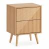 La mesita de noche de 2 cajones Rachele destaca por el diseño en relieve de líneas horizontales en el frontal de sus cajones. Con un acabado en melamina de color roble, esta mesita cuenta con patas y soporte en los cajones de metal para darle ese toque funcional y elegante.