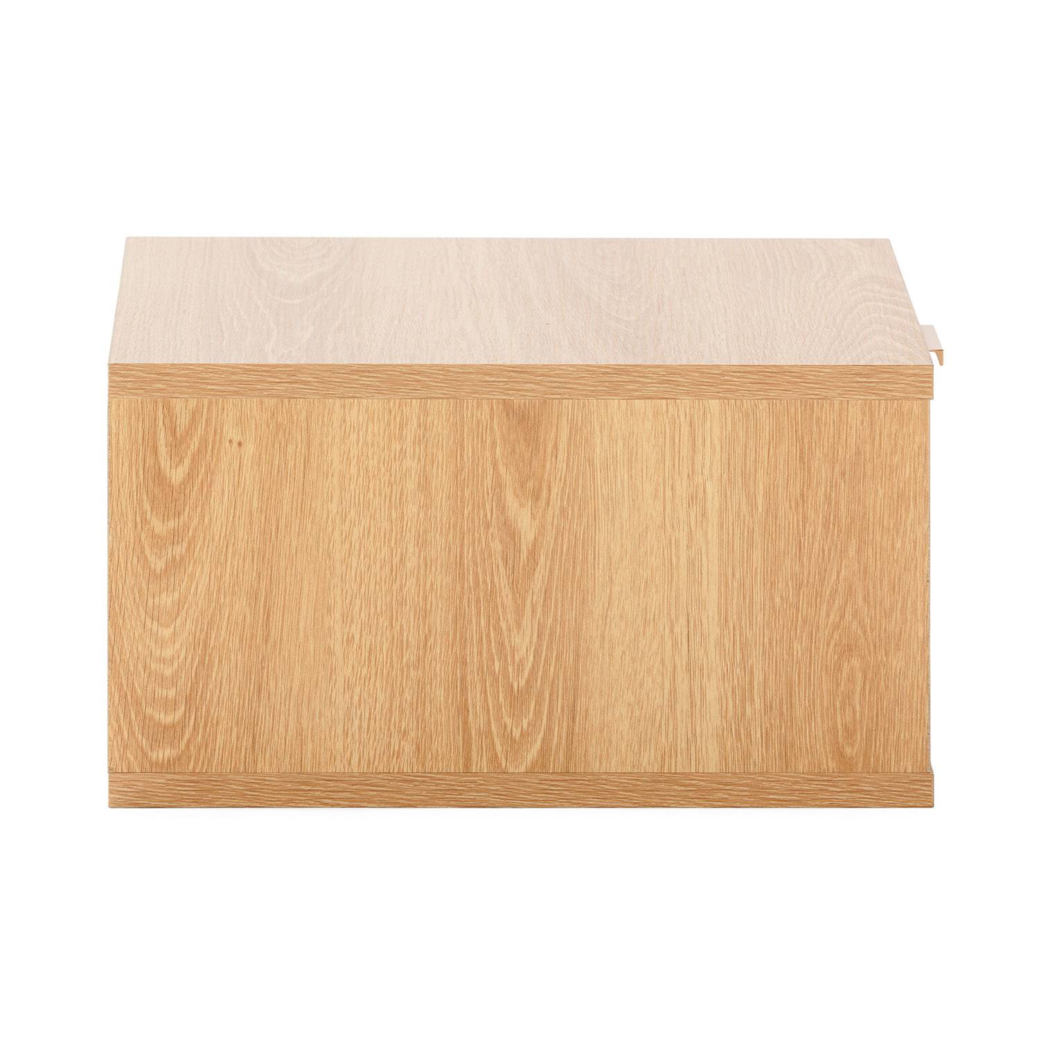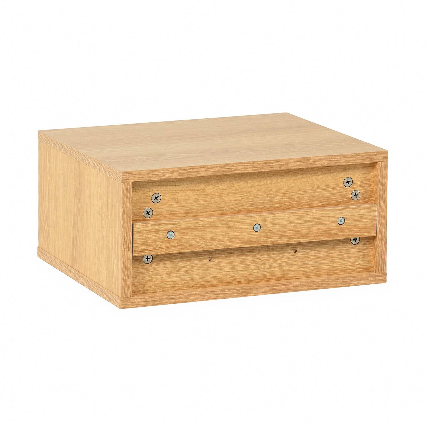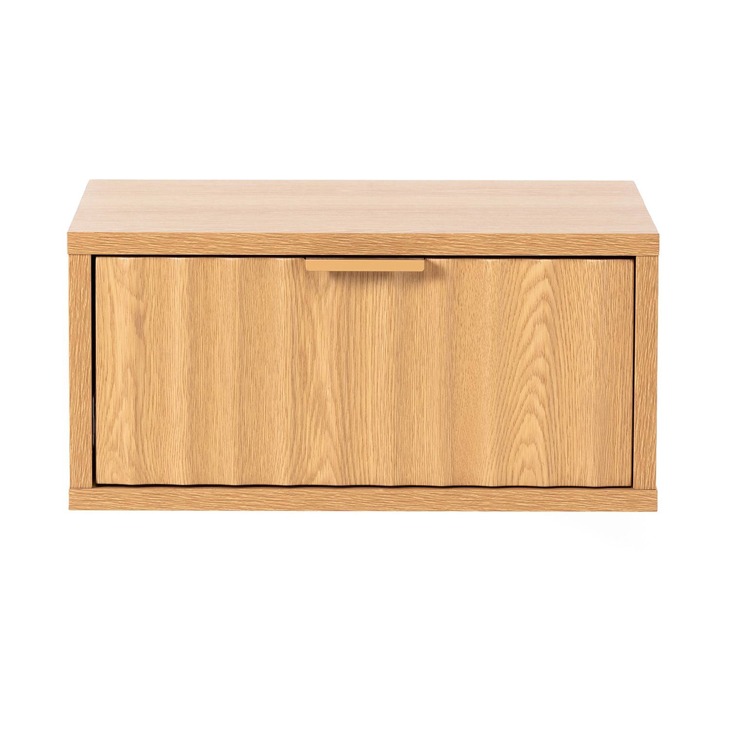 Esta mesita de noche de pared cuenta con un cajón con guías metálicas de deslizamiento suave, ideal para guardar el móvil, el cargador u otros pequeños objetos. Su superficie superior es perfecta para colocar un despertador, una lámpara auxiliar o un libro.