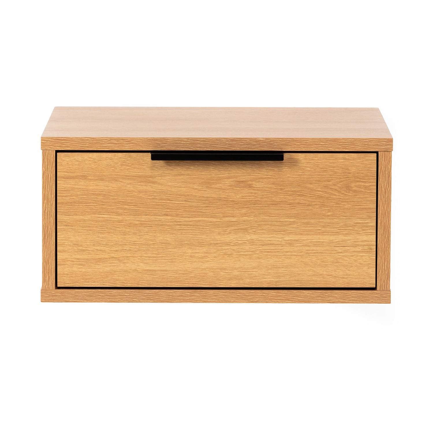 La mesita de noche suspendida Auran define el concepto de funcionalidad y estilo en el dormitorio. Fabricada con melamina de calidad de 15 mm de grosor, ofrece una estructura sólida y resistente al uso diario, manteniendo una apariencia impecable con el paso del tiempo.