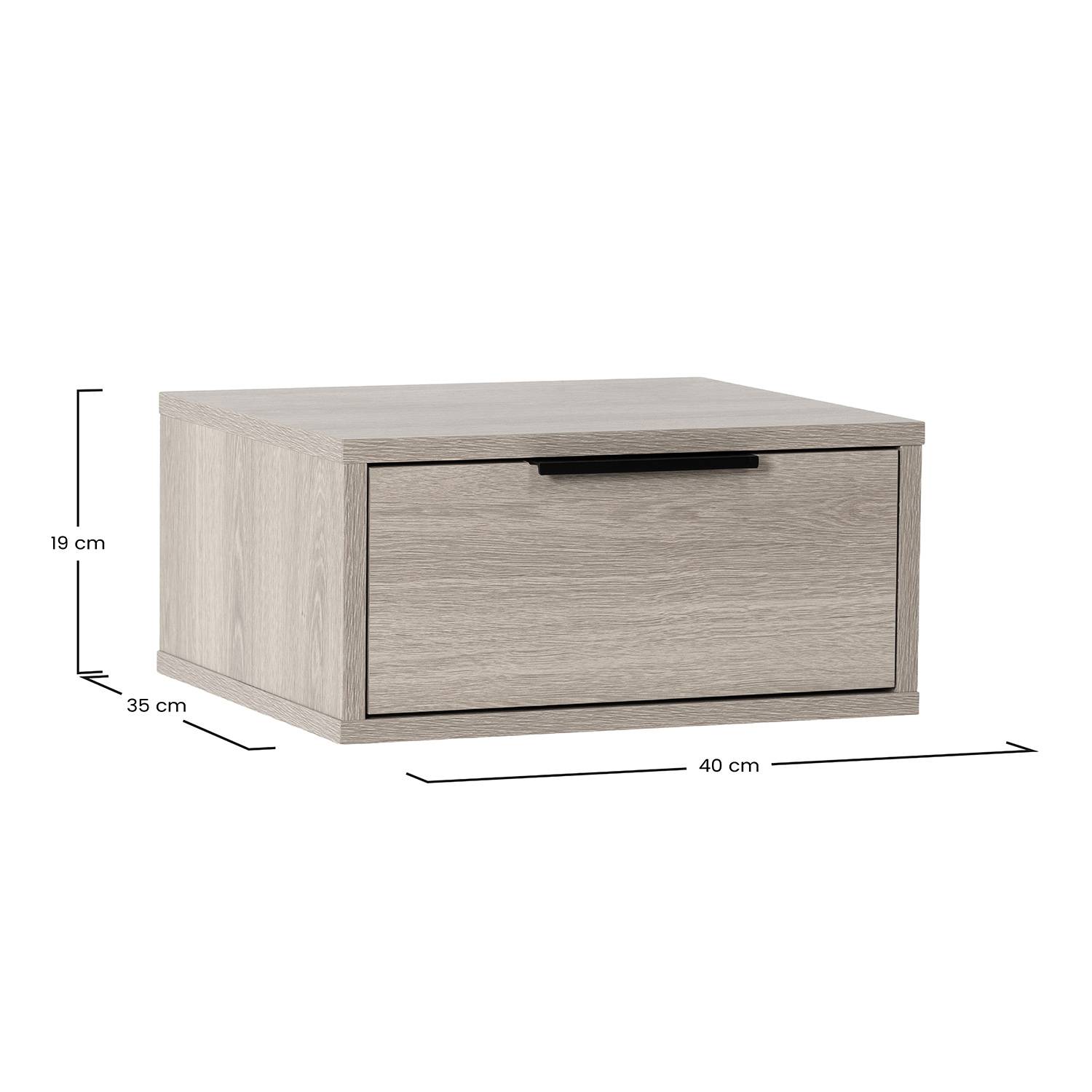 Nuestra mesita flotante Auran es el complemento perfecto para un dormitorio ordenado y con personalidad.