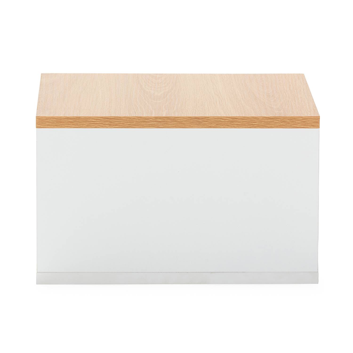 Mesita de noche fabricada melamina en color Roble y esquinas de madera maciza en color Natural. 1 Cajón con guía metálica para su fácil extracción con frontal en color blanco. Firme y resistente.