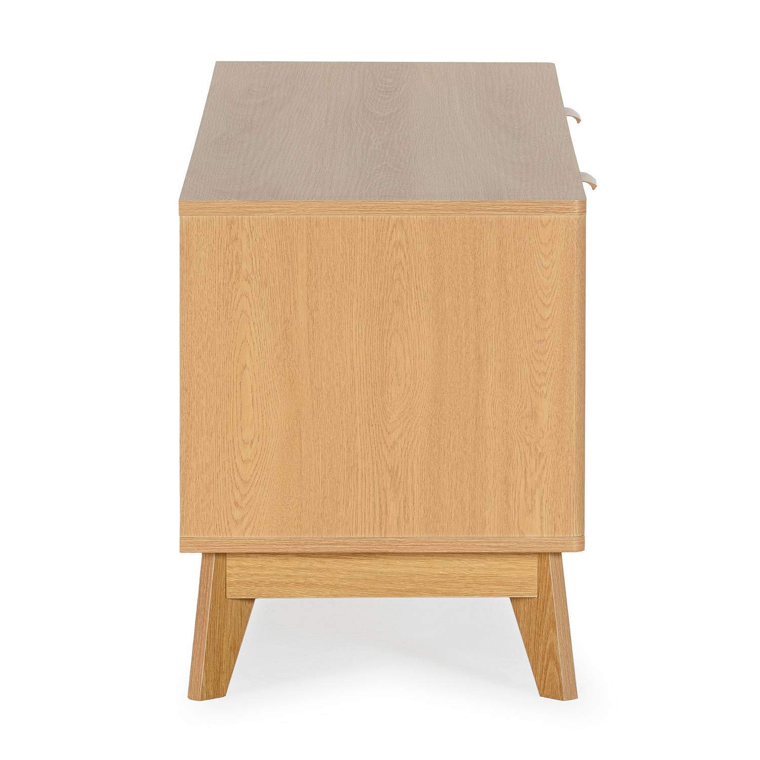Este conjunto de aparador y mueble TV en color roble está fabricado en melamina de calidad de 15 mm de grosor y paneles MDF resistentes, materiales que garantizan una estructura sólida, estable y duradera.