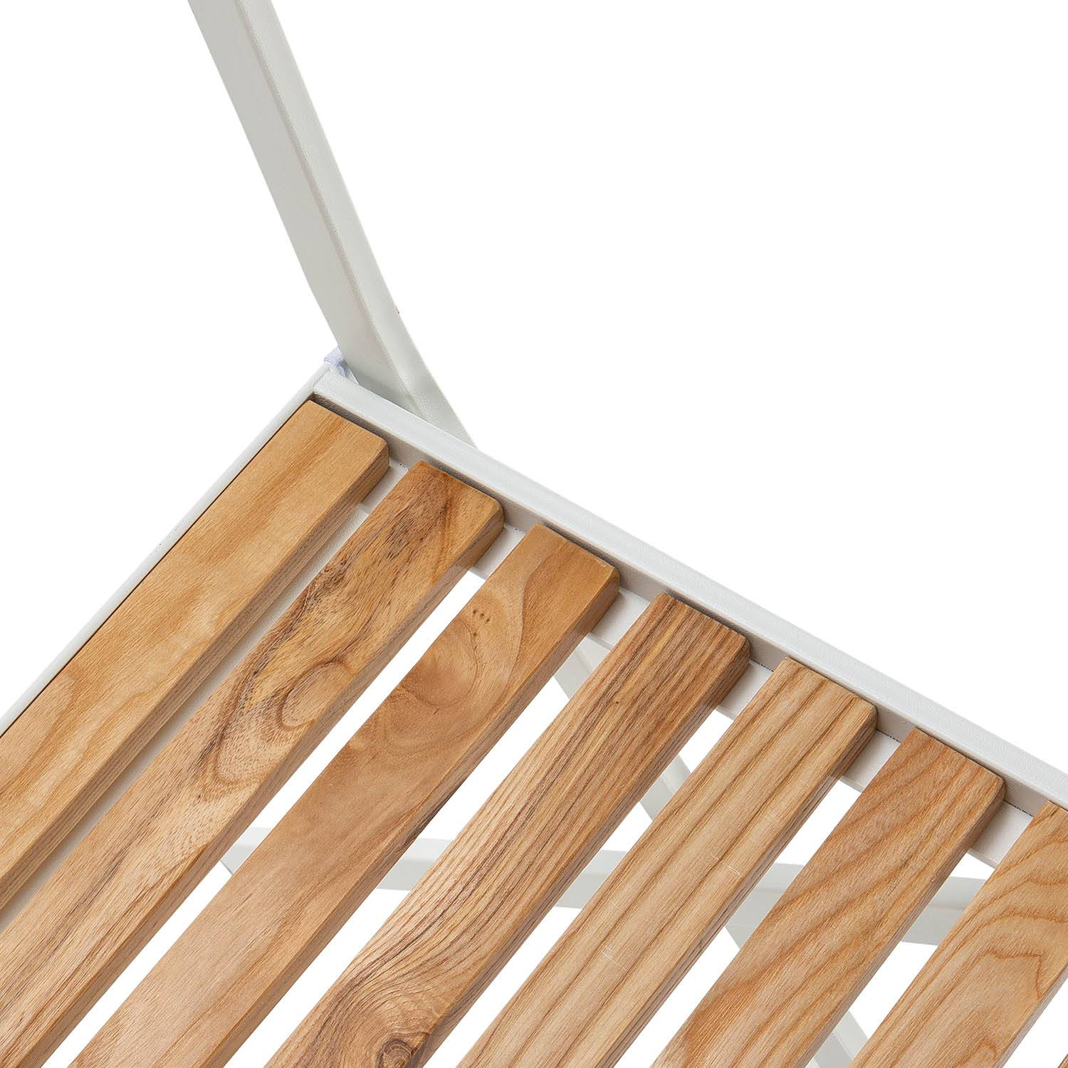 - Diseño elegante: Respaldo y asiento con tablas de madera.