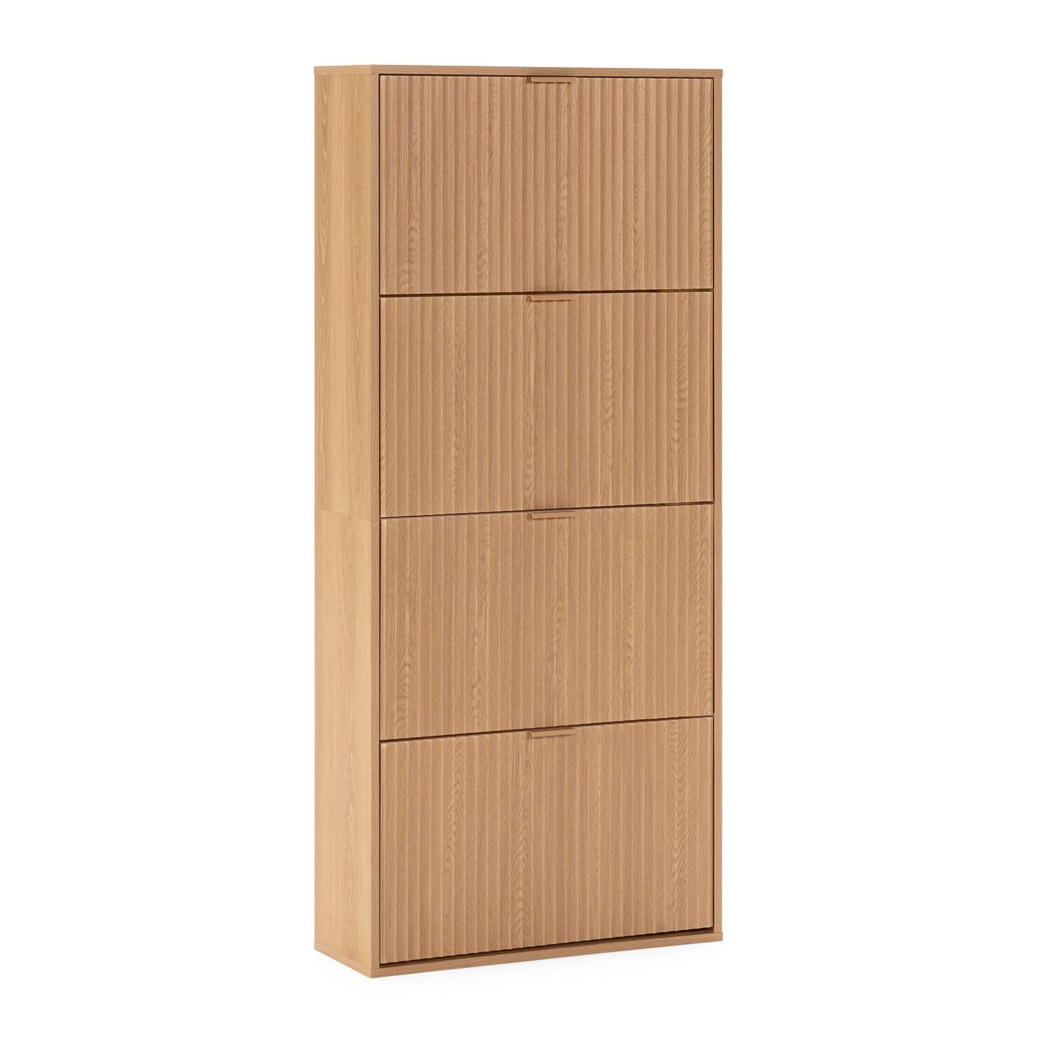 El zapatero de 4 puertas abatibles Layla esta pensado para mantener el orden y estilo en tu hogar. Fabricado en melamina calidad, este mueble zapatero ofrece una estructura sólida y duradera, perfecta para resistir el uso diario.