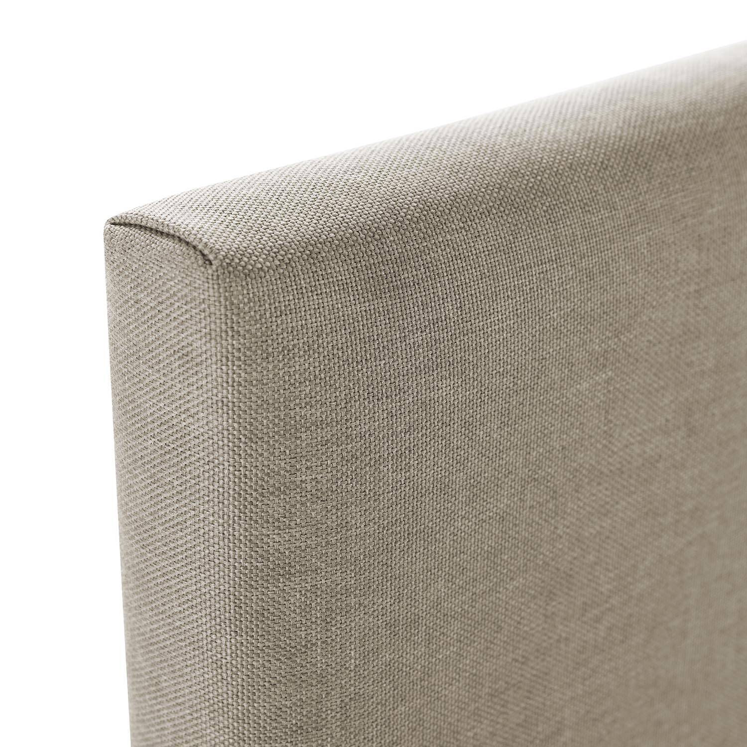 El cabecero Andrea es tapizado en tela idéntico a la base tapizada, por lo que perfectamente podrían ir unidos. Gracias a sus tonos neutros, podrás adquirir este pack y agregar los colores que quieras a la ropa de cama para combinar fácilmente tu dormitorio. Disponible en color beige, gris o gris oscuro.
