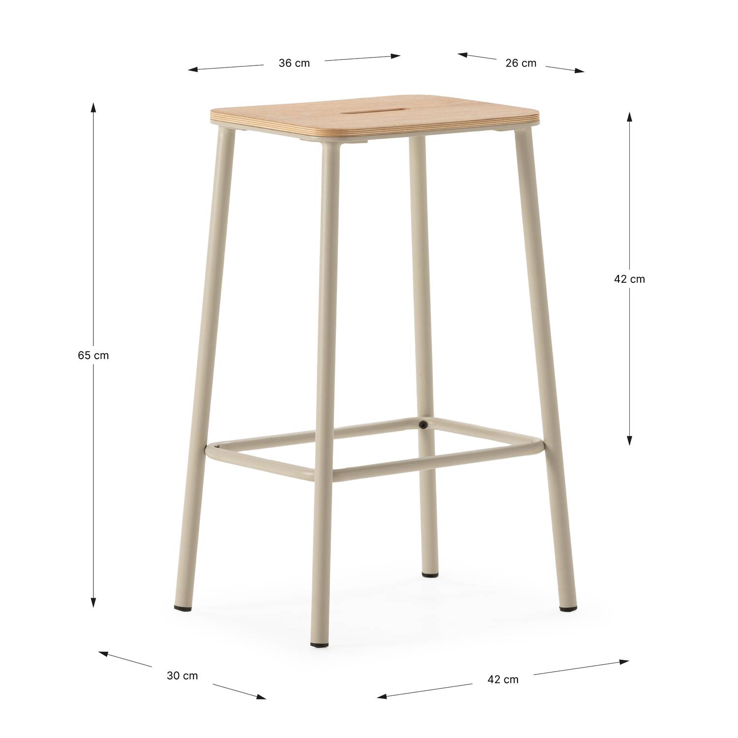 Antes de comprar este par de taburetes para la cocina o el comedor, asegúrate de comprobar previamente las medidas, tanto del producto como del espacio en el que irán ubicados.