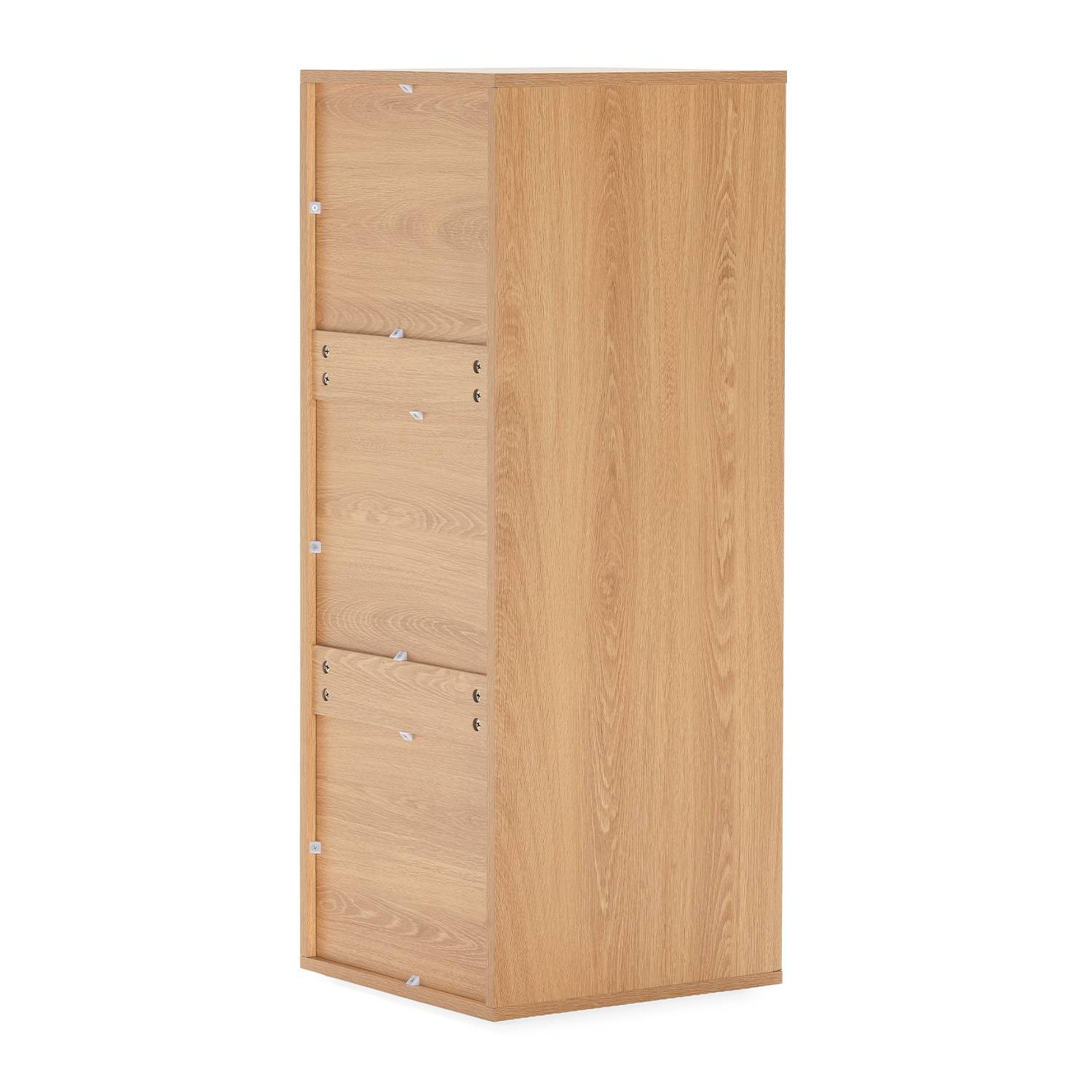 Su acabado en color roble reproduce con gran realismo el aspecto natural de la madera, aportando una sensación cálida y acogedora al ambiente. El efecto madera y sus líneas limpias lo convierten en un mueble de gran belleza. Gracias a su diseño sin patas, este sinfonier para habitación presenta una estética elegante y cuidada.