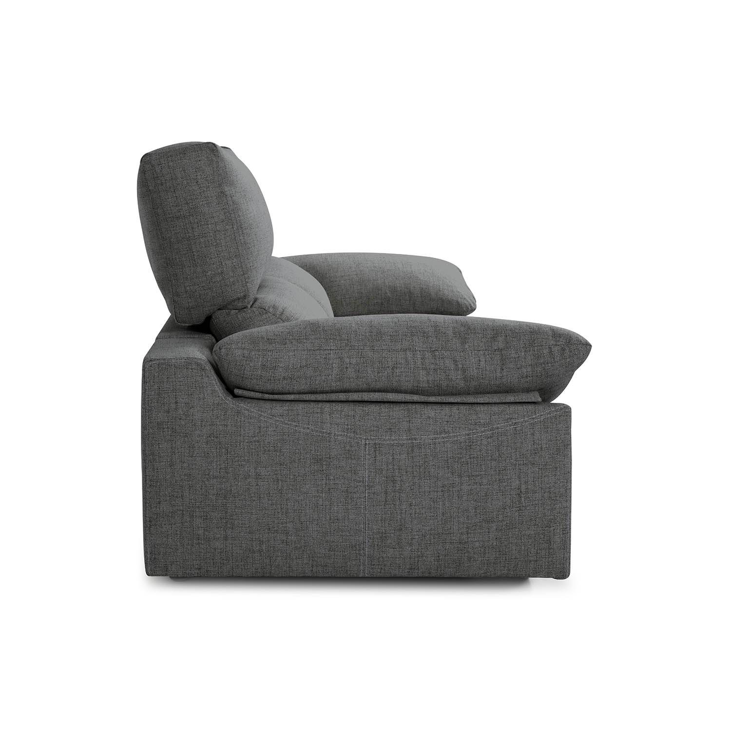 El sofá de 2 plazas Athenea de TOP MUEBLE cuenta con asientos deslizantes punto a punto y cabezales reclinables, aportando una comodidad extra. Tapizado con tela modelo Bronx y disponible en 7 colores diferentes.